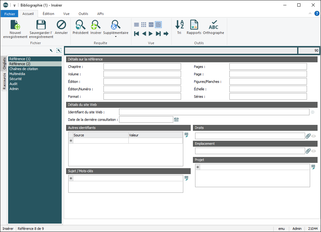 - Les onglets Référence (1), Référence (2) et Citations s’afficheront en lecture seule.