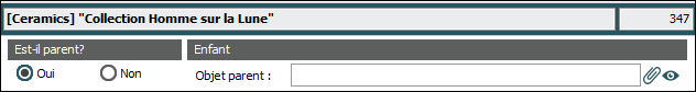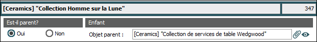 De cette façon, un objet qui comprend de nombreuses pièces peut être documenté à un niveau élevé (parent), chaque pièce (enfant) étant documentée dans son propre enregistrement. En reliant chaque enregistrement d’un objet enfantFermé An object that is subordinate to another object in a hierarchy. à l’enregistrement de son objet parentFermé In an object hierarchy, a Parent object has one or more objects subordinate to it (i.e. it has Child objects). (dans l’onglet Relations du catalogue), la relation entre les objets est documentée et une hiérarchie d’enregistrements parent / enfant est établie et affichée (dans l’onglet Pièces). La capture d’écran suivante affiche l’enregistrement de l’objet parent Wedgwood Crockery Collection et tous ses objets enfants (chacun d’entre eux ayant un enregistrement dans le catalogue) :