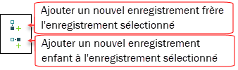 Pour ajouter un nouvel enregistrement en tant que frère ou enfant d'un enregistrement sélectionné dans la hiérarchie, nous utilisons l'un des deux boutons de l'onglet Archives :