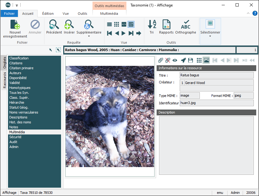 À titre d'exemple une espèce (fictive !) portant le nom (non-)scientifique Ratus bagus est utilisée :
