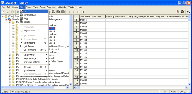 Although this support for archives is sufficient for viewing the structure of the hierarchy for the current record, it does not provide a simple mechanism for relocating other records within the hierarchy (i.e. records other than the current record), nor does it allow the hierarchy to be restructured easily. In order to address these two shortcomings and provide a constant visual reminder of the archive hierarchy, EMu 4.1 introduces the Archive View facility.