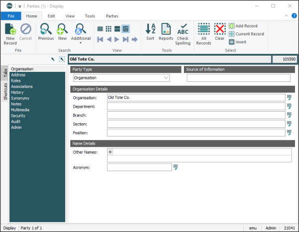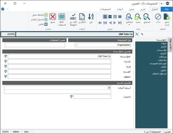 Support for Unicode allows EMu to determine the character set used to store information and adjust the display to show characters correctly. Whether you use UTF-8 or ISO-8859-6 (Arabic) as your data storage encoding, the display will adjust to show the characters correctly.