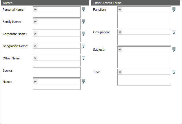 Detailed information about each EAD element can be found by following the links below to The Library of Congress definitions: Names