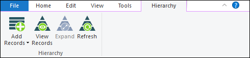 The Hierarchy tab displays the hierarchy of collections as a tree with the parent collection at the top. The hierarchy can have many levels: a sub collection can have sub collections and so on: Tip: The position of sub collections in the hierarchy is managed on the Sub Collections tab. A Hierarchy tab is added to the Ribbon when the Hierarchy tab displays: